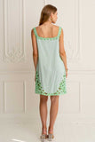 Get ready to receive all the looks and compliments wearing our spectacular Acqua Marine Mini in a dreamy acqua green color. Designed to be your effortless summer throw on for those days when you want it to be quick and easy without compromising on style. Feminine and chic, our mini features meticulous handcrafted cut out technique and a delicate embroidered design throughout. Pair with a slim heel and fine jewels for your glamorous sunset soiree, or tan sides for everyday goddess vibe.