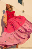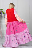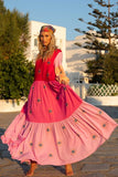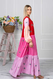 Calling all evil eye lovers! Our stunning gown in multicolor panels comes fully embroidered with evil eye motifs to protect you from bad energies and keep you enlightened as it is believed in the Mediterranean countries.