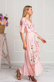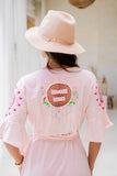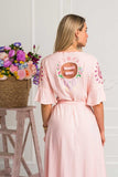 For all the Zaimara collectors, meet our new Amalfi wrap dress in a beautiful vintage pink color featuring pretty cutout detailing throughout and delicate floral embroidery design. Your perfect everyday dress comes with so many feminine details such as adjustable strings tie closure at the waist with cute little tassels, pretty flared sleeves and ruffled hems giving it a beautiful swish as you walk. For a final touch, we have enriched the back of this maxi with our classic dreamcatcher in crochet saying “You are magic” so you never forget that and people who see you passing by either!