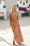 Its divine embroidery design is inspired by our mystical skies, magical solar system and the stars. It is crafted in a soft luxurious crepe fabric that brings beautiful texture and elegance in every step. This beauty comes with stretchy smocked band (that stretches up to 12cm), button up silhouette and long sleeves. Truly a bohemian and free-spirited dress, it will take you from afternoon cocktails with friends to special evening event where you want to glow!
