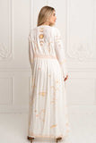 Our breathtaking Angelina Kimono Duster in delicate Ivory color is finally here! This ethereal piece of art is like a love letter to all things astrological and cosmic, you will absolutely love the way it fits and makes you feel. Embroidered in beautiful earthy colors, it comes with fixed waistband, handcrafted scallop hems and long sleeves. The ideal statement piece to wear with your favorite denims and a cute top or dress it up with a mini, golden jewels and heels for a night out! Get ready to receive compliments in every step!