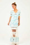 Must have this season, Celestial maxi comes in a luxe crepe fabrication with an oversized relaxed fit and flirty two mesh panelled detailing to show off your legs! Comfy and sassy, this beauty features birdlife inspired turquoise shade pastel embroidery allover and spectacular handcrafted cut out details throughout. You will love the way it makes you look and feel, get ready for compliments!
