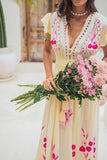 Stun in this insanely beautiful maxi gown in pretty cream color. With new little ruffle sleeves for a dimensional effect, precious floral embroidery throughout and smocked waist to fit you comfortably (stretches up to 12cm). True to size, this gorgeous gown is soft and floaty with high splits at the front of each leg giving it a beautiful swish as you walk. Pair it with some strappy heels and gold hoops for the perfect party fit or with flats and a straw bag for all those upcoming summer soirees.
