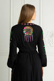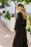 Romance, bohemian and beauty all meet in Hummingbird Maxi Wrap, finally in long sleeves. This maxi features paradise bird and pretty floral embroidery design, signature cut-work and ruffled hems giving it a beautiful swish as you walk. For a final touch, we have enriched the back of this maxi with our classic dreamcatcher design in crochet saying “Good Vibes” to spread some positivity while you are wearing it.