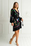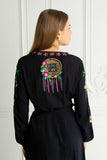 Romance, bohemian and beauty all meet in Hummingbird Mini Wrap. This beauty features paradise bird and pretty floral embroidery design, signature cut-work and ruffled hems giving it a beautiful swish as you walk. For a final touch, we have enriched the back of this mini with our classic dreamcatcher design in crochet saying “Good Vibes” to spread some positivity while you are wearing it. The most versatile piece to own in your wardrobe, ideal to pair it with flats or high boots and leggings during chilly autumn days.