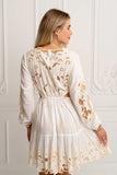 Turn heads in this stunning Isla Mini dress featured in a V-neck, long sleeve silhouette with pretty florals and sea shell embroidery design throughout. A classic and easy to wear summer dress that will take you from beach to bar with endless styling options! To add a touch of feminine allure, Isla Mini has side cutouts and elasticated waist to flatter your figure.