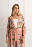 So billowy and ethereal, La Vie Es Rose Kimono in dusty pink is the essential kimono jacket you are needing this Fall season. Our embroidery design is inspired by one of the most majestic and elegant flowers, roses, a symbol of love, passion and joy, a sweet reflexion of how we want you to feel when you wear it.  Effortlessly beautiful with endless styling options, it features fixed waistband, handcrafted scallop hems, long sleeves and is fully lined to add an extra warm layer. Pair it with your favourite denims or leggings and boots for those chilly autumn days. Get ready to receive compliments in every step!