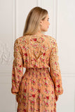 One of the favourites of all times, meet the Latin Breeze Maxi ~ a masterpiece that seamlessly weaves together sophistication and elegance, adorned with captivating hand-drawn floral motifs and pops of vibrant roses against a coral base.