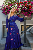Made for the real bohemian, it features divine feathers on the waistline, signature moon phase and floral embroidery design throughout making this piece a showstopper in every step. Designed to be your effortless Summer/Fall throw on for those days when you want it to be quick and easy without compromising on style. Versatile and feminine, the long sleeves come with elasticated cuffs allowing you to style them mid or full length as you wish. The maxi ruffle at the end of the maxi brings volume and glamorous movement as you walk, you will love how it fits you and makes you feel.