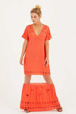 Must have this season, ethereal Mallorca maxi comes in a luxe crepe fabrication with an oversized relaxed fit and flirty mesh panelled detailing to show off your legs! Comfy and sassy, this beauty features birdlife inspired tonal embroidery and spectacular handcrafted cut out details throughout. You will love the way it makes you look and feel, get ready for compliments!
