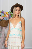 Breathtaking Odette Embroidered Dress is designed for the bohemian free spirits who never miss a sunset by the beach. Feminine and flirty, this ethereal gown features cute little embroidered waves design throughout, adjustable tie straps finished with handmade cute tassels and mind blowing open back.