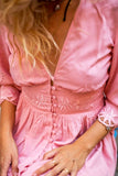Effortlessly feminine and easy-to-wear, our divine Portofino Midi Dress with its pretty cut-out embroidery throughout is a classic beauty with a fresh modern feel. Featuring a deep V-neck and gathers at the bust, back and neck this carefully curated design is the perfect midi dress to take you from a day at work to dinner with chic, elegant feel. This button up midi has a flat waistband with elastic shirred back for a perfect fit.