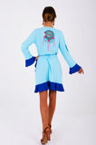 This divine Santorini Mini Wrap Dress is femininity and beauty all in one dress combined. Crafted in a soft rayon, this mini features the well-known Zaimara signature cutout detailing throughout and luxe birdlife inspired embroidery design, enchanting pretty flared sleeves and ruffled hems giving it a beautiful swish as you walk. Ideal for any occasion this mini will transcend you from coffee run to a mild summer night out with friends. With a gorgeous “Que Viva La Vida” dreamcatcher detail at the back to spread love everywhere you go!