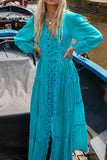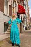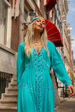 The Scala Maxi in Aqua color is charming and elegant featuring a tiered skirt that cascades to the floor, delicate embroidered lace details throughout and button down front adding a touch of sophisticated glamour. Crafted in the softest Swiss cotton textured fabric embellished with small dots, the skirt comes fully lined adding extra volume and movement in every step. Our maxi is such a beauty on its own that can easily be styled up with wedges for a busy day running errands or elevated with heels and golden jewellery for a night out with your loved ones.