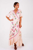 Our mesmerising Señorita Maxi Wrap Dress features the well-known Zaimara signature cutout detailing throughout and luxe birdlife inspired embroidery design. Your perfect everyday dress comes with so many feminine details, pretty flared sleeves and ruffled hems giving it a beautiful swish as you walk. With a gorgeous “Que Viva La Vida” dreamcatcher in a traditional crochet technique at the back to spread love everywhere you go!