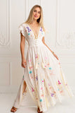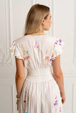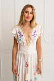 Our design team really created a masterpiece with our Summer Glam Maxi in Ivory. With stunning details at the neckline crafted in our traditional crochet technique that creates a see-through effect adding a touch of sophistication and feminine flair to this beauty. With cute little ruffle sleeves for a dimensional effect, ethereal wild flowers embroidered throughout and smocked waist to fit you comfortably (stretches up to 12cm). True to size, this gorgeous gown is soft and floaty with high splits in chic crochet technique at the front of each leg, giving it a beautiful swish as you walk. Pair it with some strappy heels and gold hoops for the perfect party fit or with flats and a straw bag for all those upcoming summer soirees.