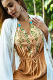 Relaxed and sophisticated, our Wild Texas romper comes with side pockets, matching tasseled drawstring tie at the waist and cute little ruffles at the front of each leg giving it a beautiful swish as you walk. Pair it with tan slides for a perfect beach-side walk look, or with statement boots to rooftop soiree in laid-back, feminine style.
