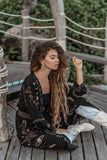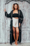 Our spectacular Angelina Kimono Duster with its mind-blowing embroidery design is inspired by our mystical skies, magical solar system and the stars.