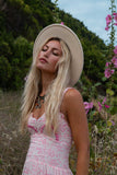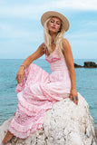 Make an entrance in this ethereal beauty Aphrodite Maxi Slip, our first hand drawn batik print design in flashes of flamingo pink, rose and cream. Hand dyed by artisan families following ancient techniques, baked in the sunlight in small batches and lined in the fresh air, creating one of a kind unique piece. Feminine and enchanting, Aphrodite Maxi features floral embroidery design, cute little ruffles throughout and elastic shirred back to accent your figure and fit you comfortably. You will feel like a princess wearing it, get ready to receive compliments at every step.