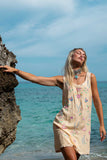 Our Butterfly Mini is the party dress this season. Created for those looking for a handcrafted statement piece, our mini is embroidered and crafted with shimmering sequins and beads in a soft and elegant cream colorway. A rounded neck and sleeveless offer sophistication and glamour. Style it with heels and statement jewellery for a night out with your loved ones or choose an easy going style with flats and our Zaimara signature oversized blazer.