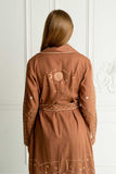 Add a timeless layer to your look with this coat, featured in a cotton fabrication with sleek tailoring for an evergreen addition to your collection. The ethereal embroidery design is inspired by our mystical skies, magical solar system and the stars, the bold statement piece you were needing this Fall. Ethereal Trench features double-breasted closure, self-tie waistband and side pockets. Ideal to pair with leggings and boots for those chilly days where you want to look chic and warm without compromising on your style.