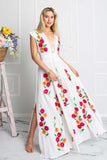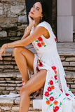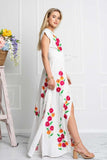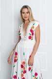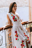 Make an entrance in this breathtaking dress with precious handcrafted crochet detailing at the neckline and colorful wildflowers embroidery throughout.