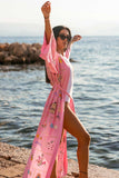 Make it your perfect resort-wear statement piece to throw over a bikini or swimsuit for lounging in style or dress it up with denims and slim heel for a night out with friends. Comes with an adjustable belt and glamorous kimono inspired sleeves.