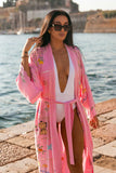 Inspired by the Mediterranean sunny lifestyle and rich heritage, our Italian Affair Kimono will transport you from charming little cafes in Italy to coastal myths and wonders of Greece. With over 30 embroidered panels, all assembled by traditional crochet technique creating a delicate see-through lace that adds sophistication and feminine flair in every step.