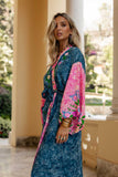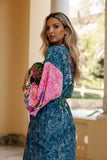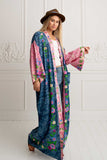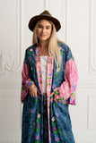 Stun in this insanely beautiful kimono in block print technique, a pretty combination of denim blue and barbie pink color prints with floral bold embroidery design throughout. With glamorous kimono inspired sleeves and comfy side pockets to keep your keys and phone without having to carry any extra bag in case you don’t feel like. Style open over a top and denim to elevate any outfit or throw on for slow mornings at home sipping your warm coffee. Unique and chic, our robe is the perfect travel accessory or gift for the Zaimara lover in the family.