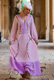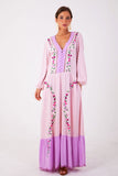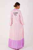 Our newest eye candy La Bella Vita Gown comes perfectly combined in a soft Mediterranean color palette with lilac appliqué detailing for an elegant touch! It features beautiful allover floral embroidery, button loop down front, low waist for a relaxed fit and cute perfect side pockets making it the most comfy and versatile piece in your wardrobe. To complete this gown to perfection have a look at the back where it comes inscribed "La Bella Vita" meaning "Beautiful Life" in Italian.