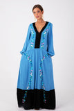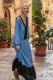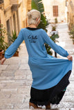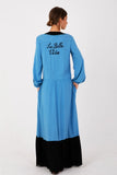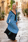 Our newest eye candy La Bella Vita Gown comes perfectly combined in a soft Mediterranean color palette with black appliqué detailing for an elegant touch! It features beautiful allover floral embroidery, button loop down front, low waist for a relaxed fit and cute perfect side pockets making it the most comfy and versatile piece in your wardrobe. To complete this gown to perfection have a look at the back where it comes inscribed "La Bella Vita" meaning "Beautiful Life" in Italian.
