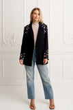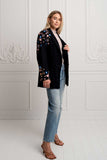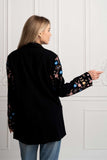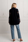 Add a classic, relaxed feel to any style with this so cool black blazer in slightly oversize silhouette. Crafted in the softest cotton fabric with full moon and floral embroidery design throughout the sleeves featuring front closure buttons and cute side pockets. The most versatile piece to own in your wardrobe, wear it on a blouse and denims for a casual look or elevate it with a Zaimara maxi dress, wedges and golden jewellery for a night out.