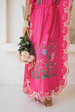 For the kaftan lovers here is the ultimate most beautiful silhouette in crepe fabric. Crafted and drawn entirely by hand, this masterpiece features floral embroidery design throughout and cut out design on the neckline, borders and hem. You will absolutely adore the way it falls and moves when you walk. Make it your perfect resort-wear statement piece to throw over a bikini or swimsuit while you walk the magnificent coastlines of Miami and Saint Tropez or dress it up with a slim heel for a night's soiree with friends.