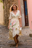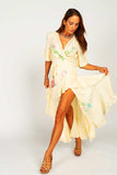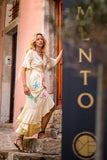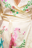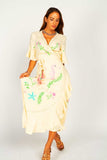 Divinity and elegance meet in our spectacular Riviera Maxi Wrap, inspired by our magical Mediterranean sea and its glorious marine wildlife. Crafted in a luxurious rayon, this maxi features the well-known Zaimara signature cutout detailing throughout, high quality embroidery design, pretty flared sleeves and ruffled hems giving it a beautiful swish as you walk. To finish this cutie off, we have designed at the back a gorgeous dreamcatcher in traditional crochet technique featuring the phrase "You are magic" to spread positivity and love everywhere you go!