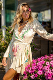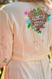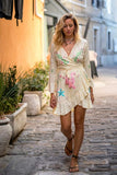 Divinity and elegance meet in our spectacular Riviera mini wrap, inspired by our magical Mediterranean sea and its glorious marine wildlife. Crafted in a luxurious rayon, this mini features the well-known Zaimara signature cutout detailing throughout, high quality embroidery design, pretty flared sleeves and ruffled hems giving it a beautiful swish as you walk. To finish off this cutie, we have designed at the back a gorgeous dreamcatcher in traditional crochet technique featuring the phrase "You are magic" to spread positivity and love everywhere you go!
