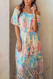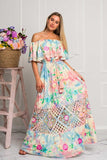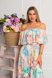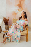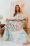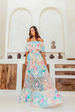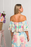 Drawn and crafted entirely by hand, it will become your absolute favorite dress ever, the way it falls, the effortlessness, the bohemian flair, it is love at first sight. Salento off the shoulder has a perfect combination of cotton candy hand dyed pastel colors, pretty floral embroidery design and crochet cut out technique throughout that oozes elegance and bohemian flair at every angle. With elasticated waist and drawstring tassels to flatter your figure, this masterpiece will fit you comfortably and steal all the looks.
