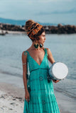 Designed for the gypsetter who travels around the globe. Tulum maxi strappy dress comes with adjustable tie straps finished with handmade cute tassels, mind blowing open back and delicate elastic waistband to flatter your figure. This unique and free-spirited stunner is a piece of art in itself, fully handcrafted in a crochet see-through technique and embroidered using the finest threads by skilled artisans that can take up to two weeks just to create one. Wear it with fine jewels for a simple date night look.