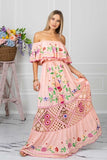 Ethereal and elegant, our Venezia Off The Shoulder is what we have always dreamed of. Wildly romantic, it features embroidered flowers, delicate lace technique details throughout and drawstring tasseled tie closure at the waist to flatter any figure.
