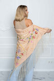 A piece of art converted into a shawl, this breathtaking piece is inspired in all things bohemian, cosmos and floral dreams. Made of a soft luxe fabrication,