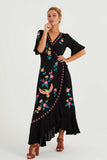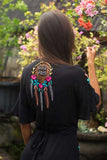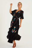 Romance, bohemian and beauty all meet in this luxe Wanderlust maxi wrap dress. This maxi features birdlife inspired embroidery with handcrafted cut out details throughout, pretty flared sleeves and ruffled hems giving it a beautiful swish as you walk. Super easy to wear, this wrap dress comes with a gorgeous “good vibes” dreamcatcher detail at the back to spread love anywhere you go!