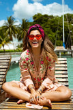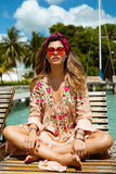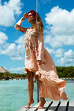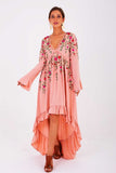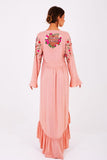Make an entrance in the dreamy Zaimara High Low Dress in a soft coral color featuring handcrafted crochet detailing at the neckline and colorful wildflowers embroidered throughout. Flirty and chic, this long sleeves dress is accented with a cascading ruffled trim that allows you to show off your favorite tan slides. Putting you in the centre of attention in every step, it comes with a killer detail at the back - a delicate heart in a traditional crochet technique with a phrase “Bring Your Own Sunshine” - to spread your light everywhere you go!