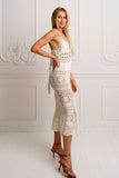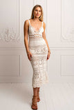 Feminine and beautiful for a major eye-catching moment, this midi dress features v neckline crochet design and strappy back tie details. Handmade in the softest cotton threads, it can be worn with a mini slip under and heels for a more elegant look or be thrown on over your favorite swimsuit during your next vacay. You will love the way it fits and looks on you, get ready for compliments.