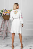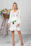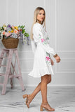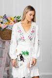 A real show stopper, our Zaimara signature wrap dress in Ivory color is fully handcrafted featuring cut out details and tropical fauna inspired embroidery design throughout.