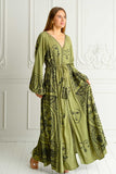 A masterpiece on its own, Artistry Embroidered Dress is inspired by linear art, the drawing of faces or patterns using the same line. Crafted in divine linen blend, this maxi in olive color comes with button up front, elasticated cuffs and a drawstring at the waistline. You will absolutely adore the way it fits and makes you feel. Air it with comfy wedges for a day look or heels and fine jewellery for a night out with friends. Get ready to be complimented in every step!