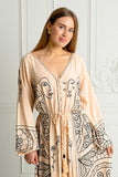 A masterpiece on its own, Canvas Embroidered Dress is inspired by linear art, the drawing of faces or patterns using the same line. Crafted in divine linen blend, this maxi in apple blossom color comes with button up front, elasticated cuffs and a drawstring at the waistline. You will absolutely adore the way it fits and makes you feel. Pair it with comfy wedges for a day look or heels and fine jewellery for a night out with friends. Get ready to be complimented in every step!