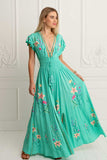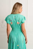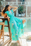 Our design team really created a masterpiece with our Flores Gown in Acqua Green. With stunning details at the neckline crafted in our traditional crochet technique that creates a see-through effect that adds a touch of sophistication and feminine flair to this beauty. With cute little ruffle sleeves for a dimensional effect, ethereal wild flowers embroidered throughout and smocked waist to fit you comfortably (stretches up to 12cm). True to size, this gorgeous gown is soft and floaty with high splits in chic crochet technique at the front of each leg, giving it a beautiful swish as you walk. Pair it with some strappy heels and gold hoops for the perfect party fit or with flats and a straw bag for all those upcoming summer soirees.
