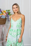 Emerald Maxi Slip is wildly romantic and elegant, designed to be your effortless summer throw on for those days when you want it to be quick and easy without compromising on style. With adjustable straps and elasticated waist, this beautiful strappy dress in emerald color comes embroidered in cream and tonal luxe threads.